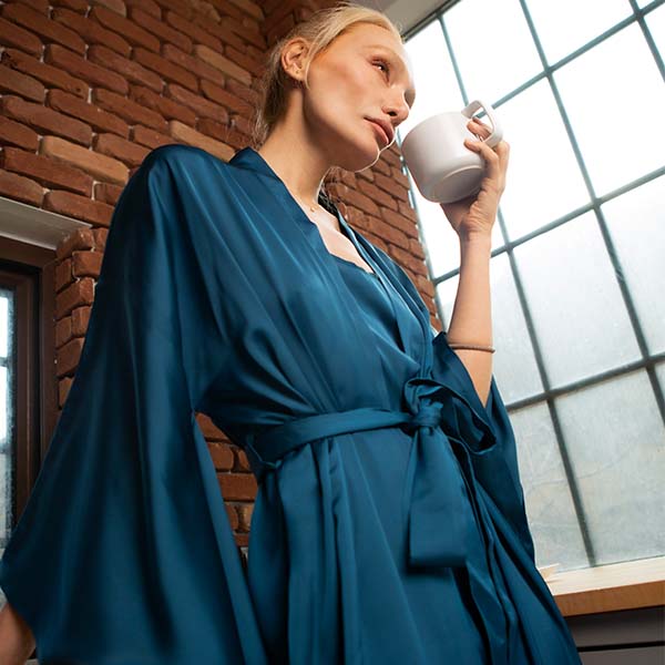 مشخصات محصول : آیتم: ربدوشامبر آستین کیمونو ویژگی ظاهری: رنگ: سبز آبی آستین کیمونو بلند جلو باز پشت گلدوزی شده (شکوفه های توکیو ) رنگ : سبز آبی طرح : ساده جنس : ساتن ابریشم سایز : 36 تا 46 کجا بپوشیم . . . داخل خانه، سفر ،کلیپ ،مهمانی نحوهی نگه داری و شست و شو: با آب سرد شسته و یا خشکشویی شود حداکثر دما 60 درجه با حرارت متوسط اتو کشی شود از مایع سفید کننده استفاده نشود