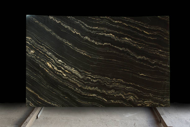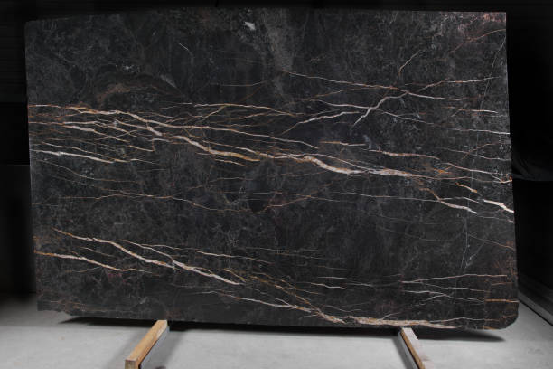 سنگ مرمریت مشکی با طرح طبیعی و سطح براق مناسب دکور داخلی