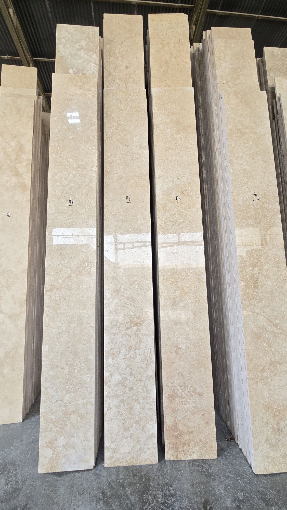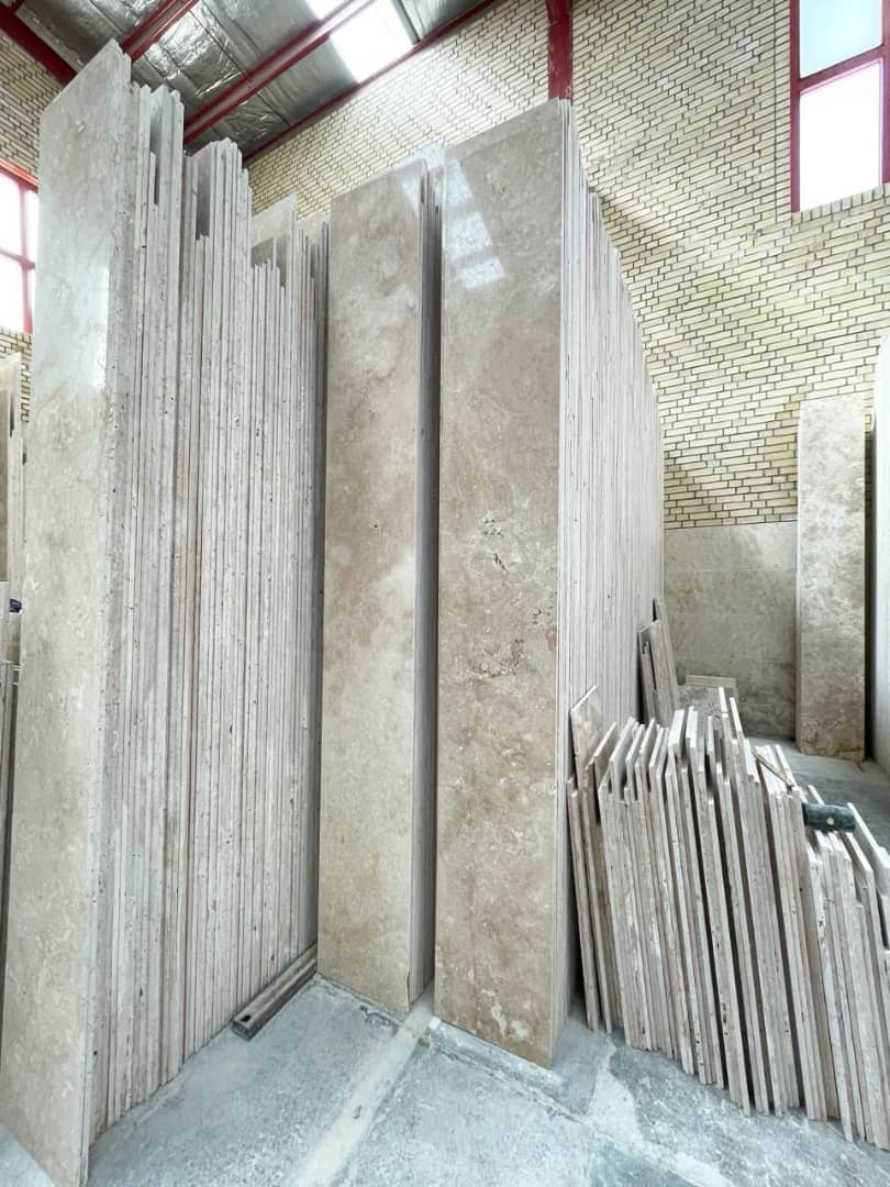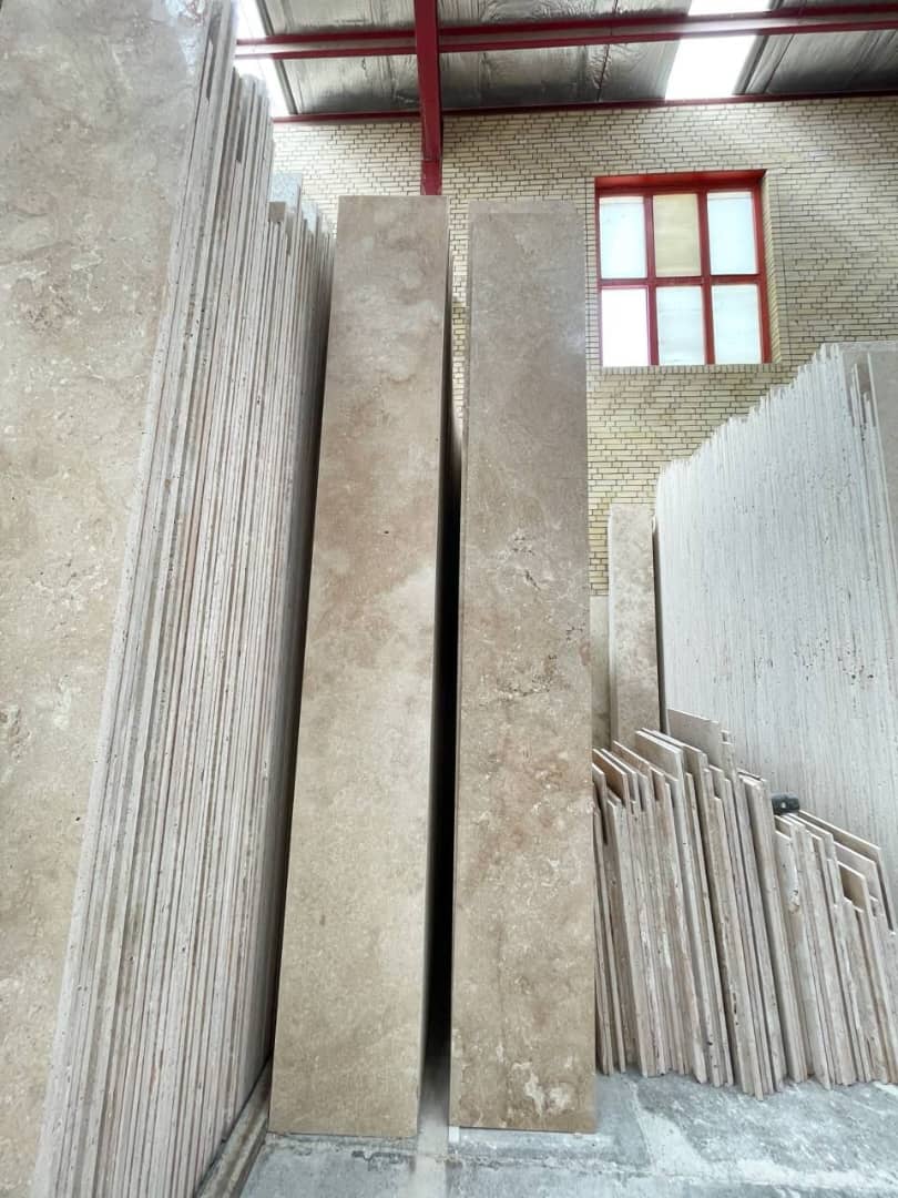 سنگ تراورتن رامشه ۴۰ طولی تم رنگی کرم قد و پا بلند نمای خارجی و داخلی و پشتکاری