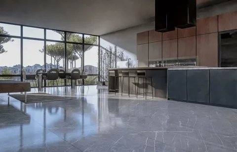 سرامیک کف شیشه ای با جلوه درخشان و فضایی لوکس