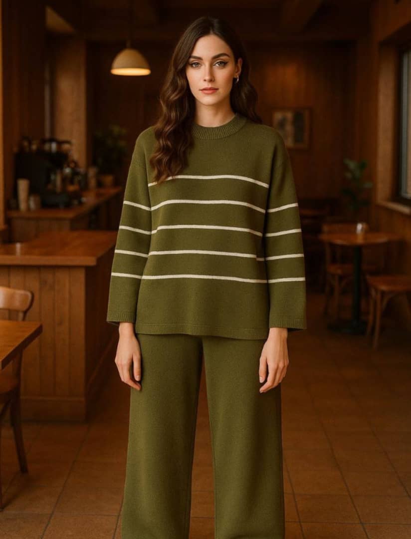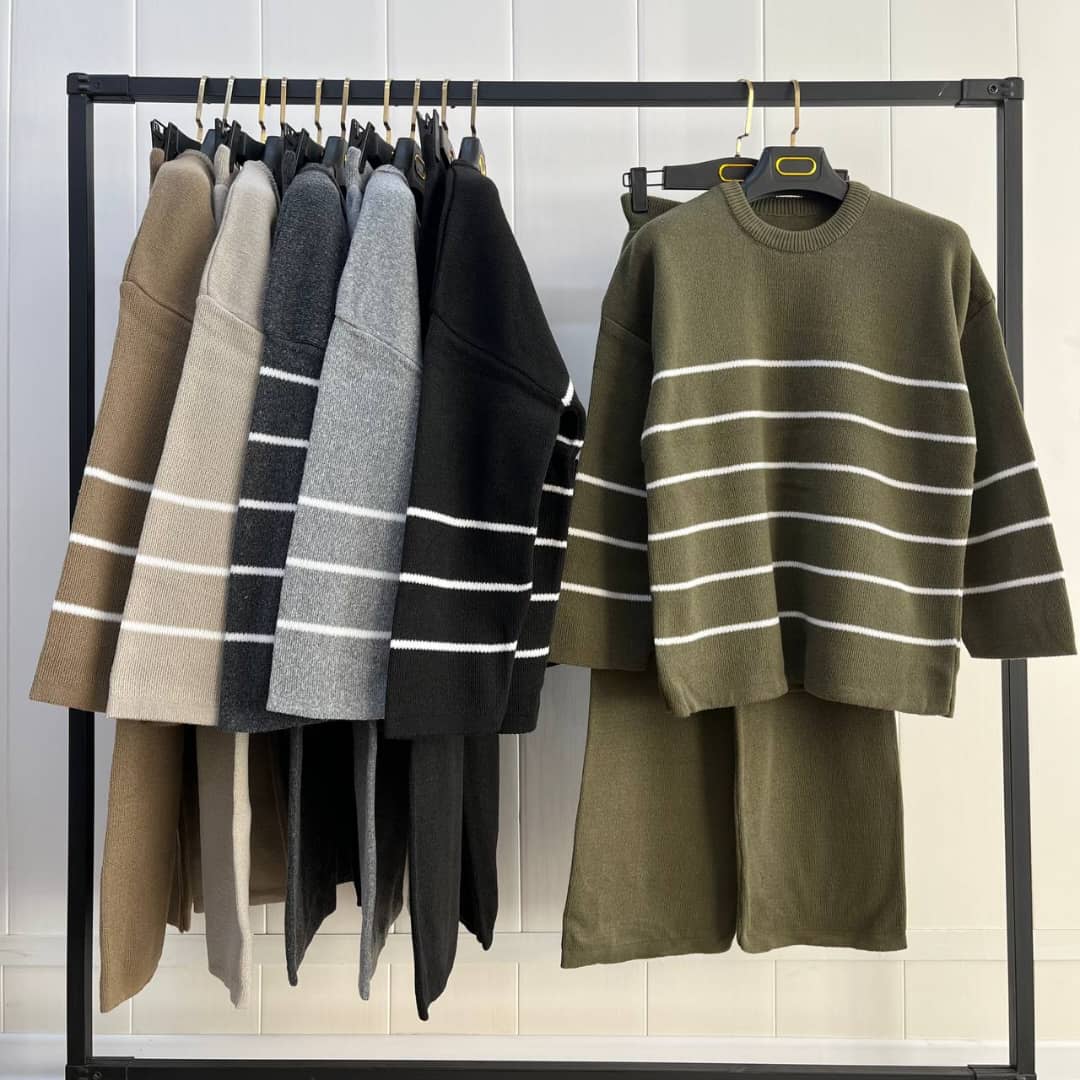 #ست_بلوز_شلوار_بافت_راه_راه_ریز 📊کد 5 💯 اصالت و کیفیت💯 ✅کیفیت دوخت و پارچه A++✅ قد بلوز ۷۰ قد شلوار ۱۰۰ 📏فری سایز از ۳۶ تا ۴۴ 🧮تعداد در بسته ۶ و ۱۲ عددی 🌈۶ رنگ