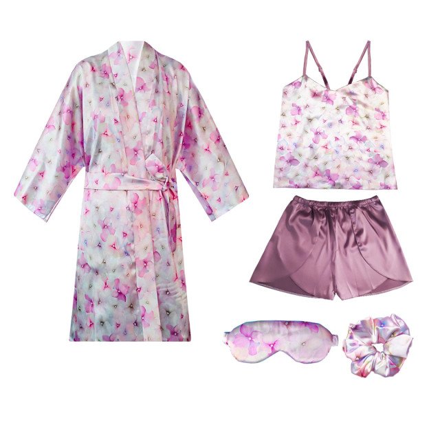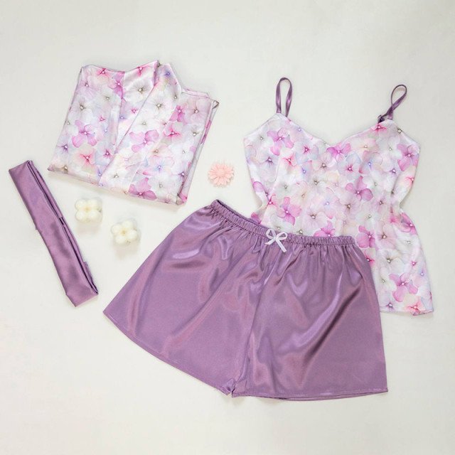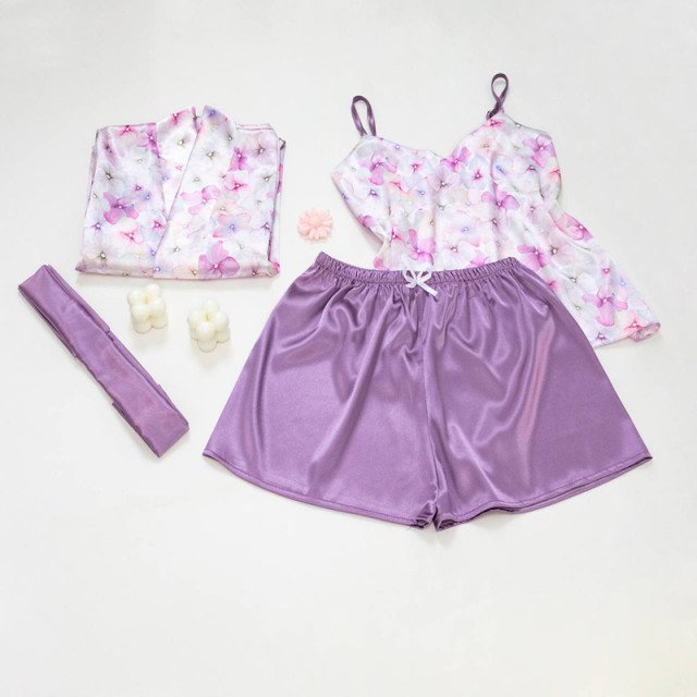 ست روبد و شامبر و تاپ شورتک زنانه ساتن ابریشم
