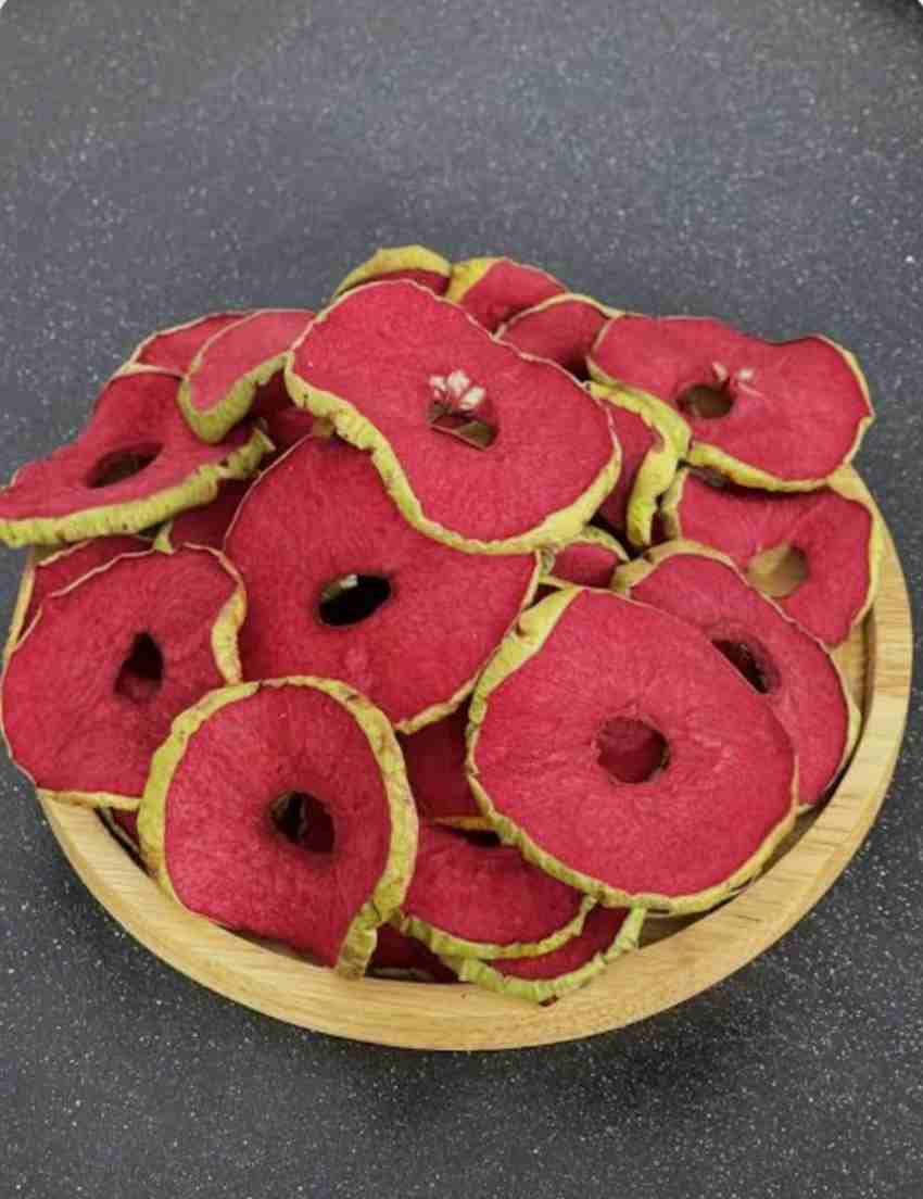 سیب لبویی خشک یک محصول ترکیبی که اصولا در آن سیب سفید با رنگ غذایی طبیعی مانند پودر لبو یا توت فرنگی به منظور ایجاد طعم و رنگ جدید ترکیب می گردد. سیب لبویی خشک بیشتر برای ترغیب کودکان و همچنین ایجاد تنوع طعمی و رنگی در میوه خشک انتخاب می گردد. این شیوه تولید از دوران کهن در بسیاری از روستا های ایران به ویزه در مناطق شمال کشور مرسوم بوده است یک میان وعده منحصر به فرد با رنگ جذاب و طعمی ملس است که نهتنها ذائقه شما را به وجد می آورد، بلکه فواید بی شماری برای سلامتی دارد. این میوه خشک شده با حفظ ویتامین ها و مواد معدنی خود، انتخابی عالی برای تغذیه سالم و تقویت بدن محسوب می شود.