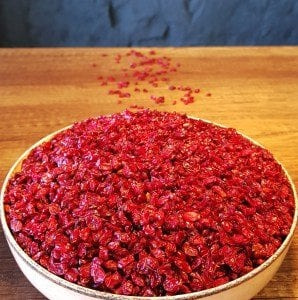 زرشک اعلا یکی از خاص ترین محصولات خراسان است که با رنگ قرمز درخشان و طعم ترش و دل انگیز خود شناخته می شود. این زرشک از بهترین بوته های کوهستانی به دست می آید و پس از خشک شدن طبیعی طعمی ماندگار پیدا می کند. زرشک اعلا دارای عطر بی نظیر و دانه های سالم و یک دست است که جلوه ای زیبا به غذا های ایرانی مانند زرشک پلو می دهد. این میوه سرشار از ویتامین سی و مواد آنتی اکسیدان است و به عنوان یک خوراک طبیعی برای افزایش انرژی و تقویت بدن شناخته می شود.
